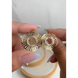 Brinco de argola com detalhes em zircônia cúbica. ...